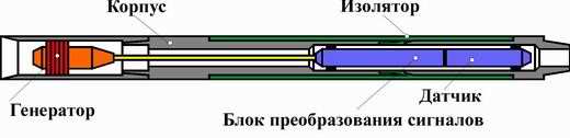 низкочастотный электрический сигнал, подаваемый на диполь. Для питания измерительного блока используется генератор, приводимый во